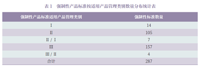 按标准化对象,医疗器械强制性标准包括基础通用标准97项、产品标准297 项、方法标准1 项。基础通用标准主要涉及产品通用安全和技术要求等方面。产品标准适用产品按医疗器械管理的287 项,按其适用医疗器械类别分布情况见表1 ;还有10 项标准的适用产品暂不按医疗器械管理,如GB 18281《医疗保健产品灭菌 生物指示物》和GB 18282《医疗保健产品灭菌 化学指示物》系列标准,由于这些标准均采用国际标准,而国际标准的国内对口单位是全国消毒技术与设备标准化技术委员会,其主管部门为国家药品监督管理局,因此也列入医疗器械标准范畴。
